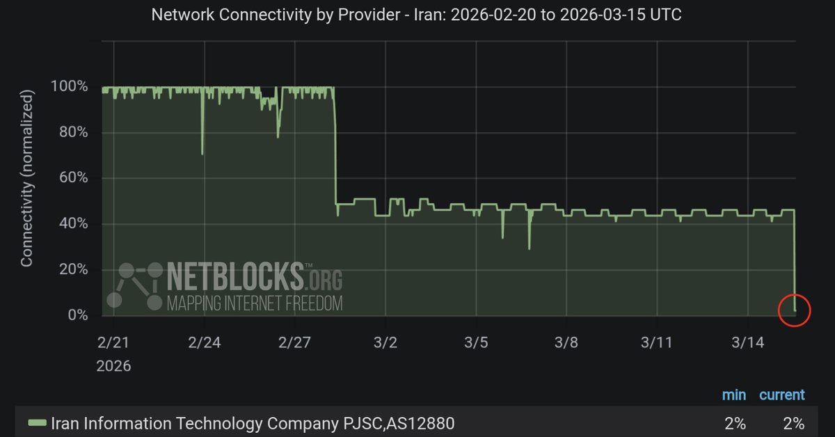 נט־בלוקס הודיעה שניתוק האינטרנט באיראן החמיר ואף שיבש כלי תקשורת חצי־רשמיים. מייסד הארגון אמר ל־AP שהחיבור לאינטרנט קרס במהירות החל מהשעה 12 לפי שעון מזרח ארה"ב, ובאותו זמן גם סוכנות...