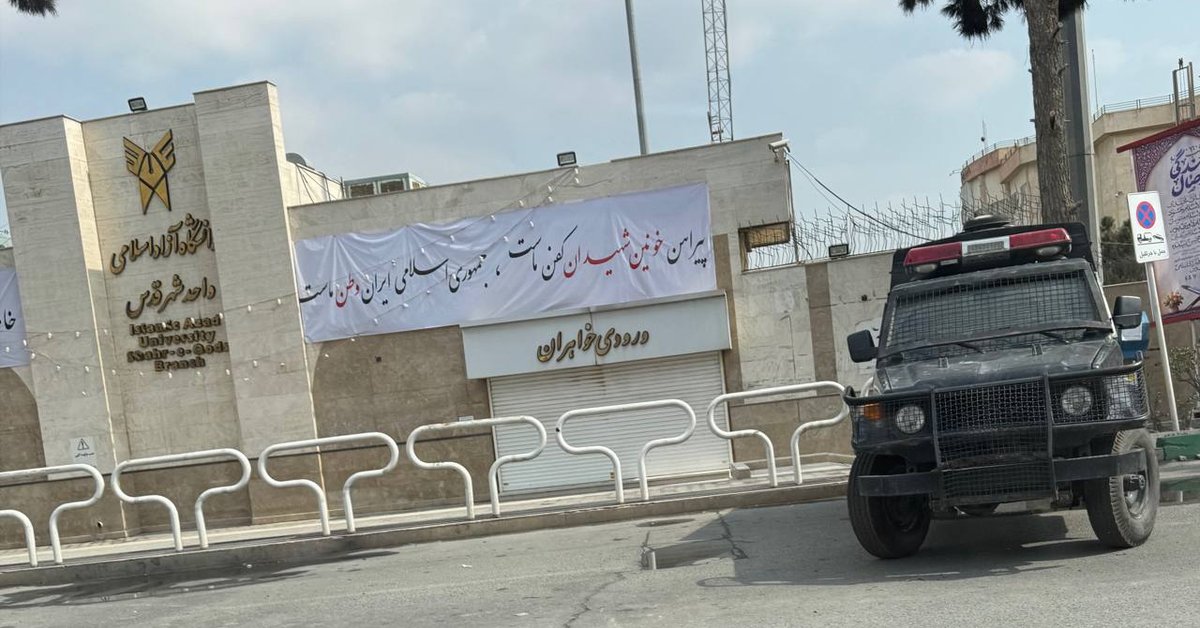 תמונות שנשלחו ל‑Iran International מראות כלי רכב צבאיים פרוסים סמוך לכניסה לאוניברסיטת אזאד בשאהר-קדס. לפי תושבים מקומיים, לאחר מתקפה על מפקדת משמרות המהפכה (IRGC) בשחרק פרזאן, כוחות דיכוי התמקמו באוניברסיטה...