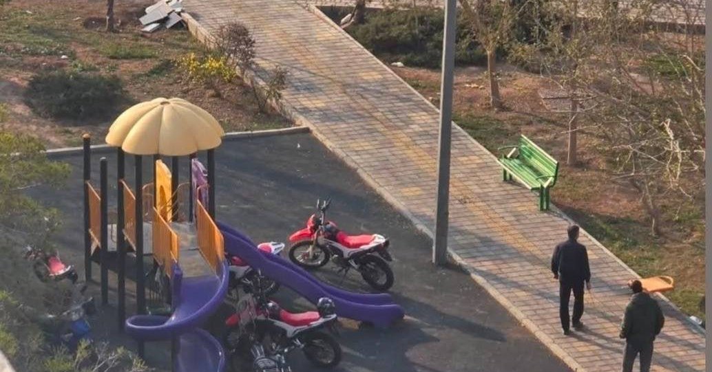 תמונה ברשתות החברתיות מראה שני אנשי ביטחון שהחביאו את אופנועיהם בין מתקני משחק בפארק. מיקום וזמן המדויק לא ידועים.