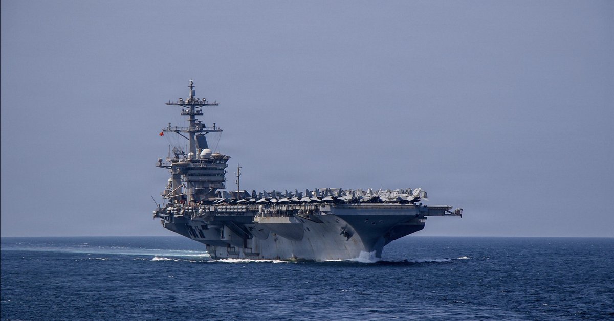 סנטרקום פרסם תמונה של מטוס חמקן F-35B על סיפון נושאת הנחיתה הימית טריפולי בים הערבי, מוכן להמראה. לנושאת זו כ-3,500 חיילים והיא משתתפת ביישום המצור הימי על נמלי איראן; לפי...
