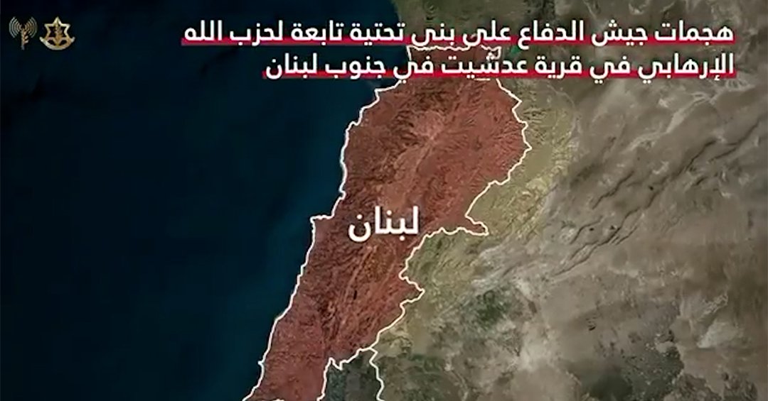 צבא ישראל הודיע על גל תקיפות אוויריות באזור עדשית בדרום לבנון. הותקפו מחסני נשק, משטחי שיגור ומרכזי פיקוד של חיזבאללה. לפי הצבא, חיזבאללה משתמש באזורים אזרחיים לפריסה.
