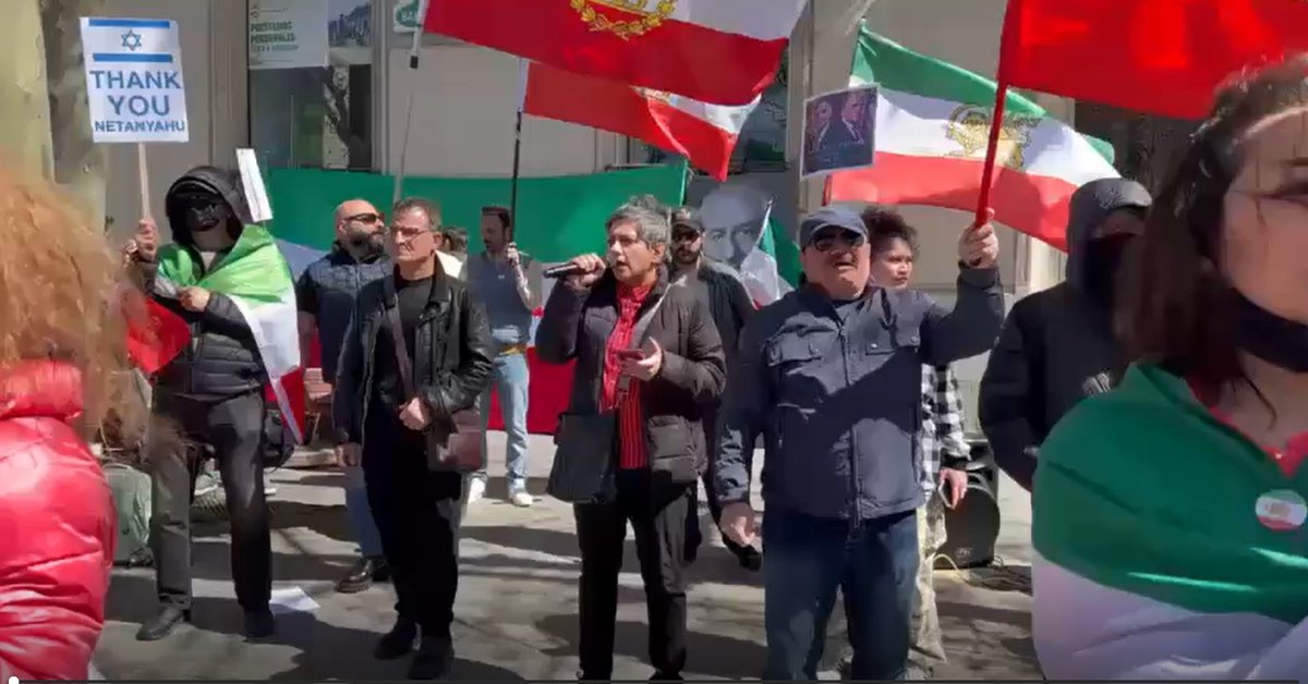 קבוצה של איראנים המתגוררים בספרד התקבצה במדריד כדי לתמוך ב"מהפכה הלאומית". המשתתפים החזיקו דגלי אריה-ושמש, קראו סיסמאות לתמיכה בנסיך רזא פהלווי ותמכו במבצעי אוויר של ארה"ב וישראל נגד נציגים ומתקנים...